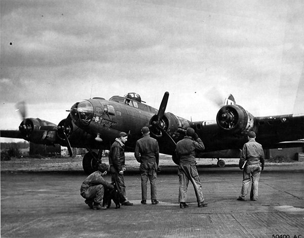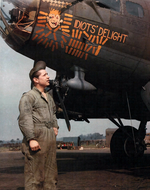 | 42-30301, "Idiot's Delight", a B-17F-100-BO built in Seattle, and one of the few F-models flown by the 447th. It was originally assigned to the 94th Bomb Group, and on loan to the 447th. The aircraft was lost over France on 19 June 1944 with the Milton crew. |