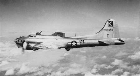 The Mustaleski crew was on our right wing on the mission to Kiel. I was watching them just as they got hit by an 88 on the tip of the left horizontal stabilizer. It was blown completely off, and left the vertical rudder looking like a sieve. The tail gunner was hunched down, apparently doing something with his guns, just as they were hit. He sat up bolt upright with his head swiveling left and right for a moment, and when he saw the aircraft was still flying in formation he relaxed back in his seat and stayed there. The aircraft's tail dropped somewhat lower when it lost half its tail, but kept on flying. The pilot (Mustaleski) had to start essing, in order to stay with the group, as (I presume) his airspeed had to be increased. He went over the target with us, dropped his bombs, and came all the way home to Rattlesden. I understand he was awarded the DFC for that piece of flying. |