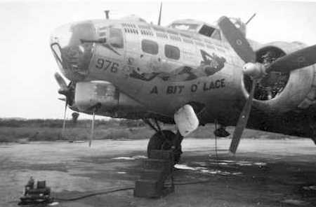 42-97976, Louie the Creep and A Bit o' Lace, a B-17G-40-VE built by Lockheed in Burbank, assigned to the 709th at Rattlesden on 14 June, 1944. One of the best-known aircraft of the group, 42-97976 flew her first combat mission on July 6.
