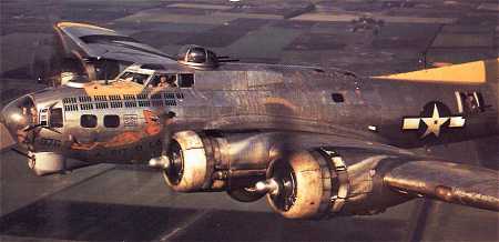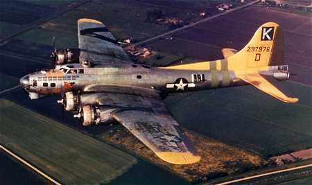 The Mustaleski crew was on our right wing on the mission to Kiel. I was watching them just as they got hit by an 88 on the tip of the left horizontal stabilizer. It was blown completely off, and left the vertical rudder looking like a sieve. The tail gunner was hunched down, apparently doing something with his guns, just as they were hit. He sat up bolt upright with his head swiveling left and right for a moment, and when he saw the aircraft was still flying in formation he relaxed back in his seat and stayed there. The aircraft's tail dropped somewhat lower when it lost half its tail, but kept on flying. The pilot (Mustaleski) had to start essing, in order to stay with the group, as (I presume) his airspeed had to be increased. He went over the target with us, dropped his bombs, and came all the way home to Rattlesden. I understand he was awarded the DFC for that piece of flying. |