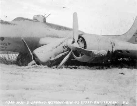 Returning from the mission to Karlsruhe, Lt. Summers made an emergency landing at Rattlesden