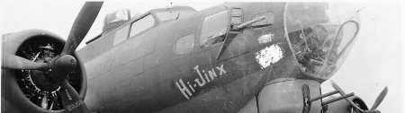 E "Hi-Jinx" 708th BS Photo November 1943, Harvard AAB; lost February 6, 1944 at Wissous, France with the Allen Reed crew See Aircraft Profile |