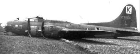 L "Big Stoop" 708th BS Photo April 1944 on Bornholm Is., Denmark after crash landing on April 11. Photo from usairmen.com See Aircraft Profile |
