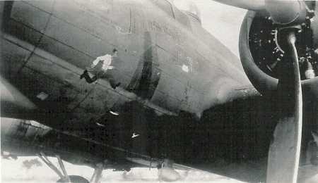 "Paper Doll" 710th BS Newspaper photo from Syracuse Herald-American, sometime after March 3, 1944, when Paper DOll was lost over Germany. See Aircraft Profile |