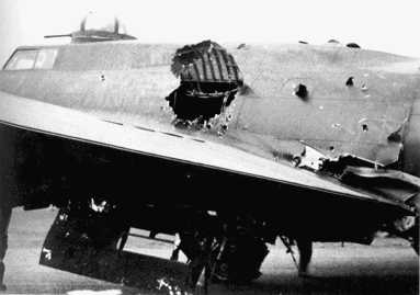 "Dottie Jane" Photo dated March 6 1944 upon return to Rattlesden with flak damage. Designated for salvage on March 7, 1944. See Aircraft Profile |