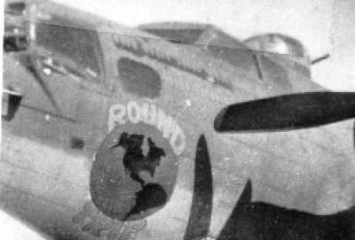 "Round Trip" 708th BS Photo approx. April 1944, based on 20 missions shown; crash landed during takeoff on January 6, 1945; referred to in Engineering report as "camera and weather ship." |