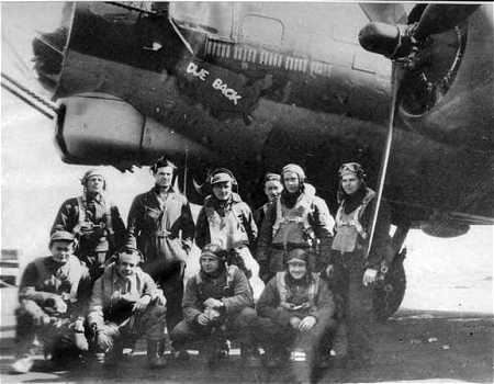 "Due Back" 708th BS Photo taken at Rattlesden, sometime between November '43 and April '44 with an unidentified crew. Due Back was lost on April 29, 1944. |