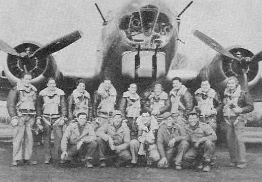 | Craig crew, 709th Standing, L-R: Lt. George Rosenfield, B Lt. David Craig, P Lt. Dale Lewellen, CP Lt. Robert Abbott, N Kneeling, L-R: Oliver Dismuke, ROG William Attiyeh, ENG William Cross, BTG Not Shown: William Noa, WG Charles Bante, Jr., TG Identified by Ms. Connie Williams |