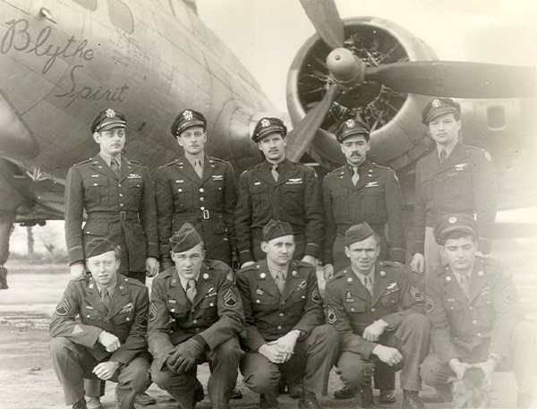 711th Standing, L-R: Ernst "Bob" Rohde, P Alan S. Cook, CP Gordon F. Serrott, B John D. Stockham, N Kneeling, L-R: Leonard C. Smith, TG Frank J. Wisniewski, BTG John P. Biscardi, WG Walter J. Hemhauser, ENG George W. Schwegel, ROG Identified in Spring 2002 447thBG Newsletter, p. 6 |