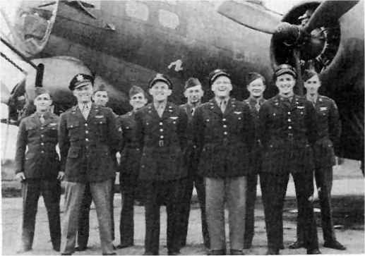 Returning from this mission with three engines failing, the aircraft reached England when the crew bailed out. Lt. Clarence Aaberg was the last to leave the plane, and was killed when his parachute failed to open. See Combat Diary- Richard Pitt, Jr. His place was taken by Lt. George Hoffmeister, co-pilot from the original Keller crew, for many of the missions to follow. |