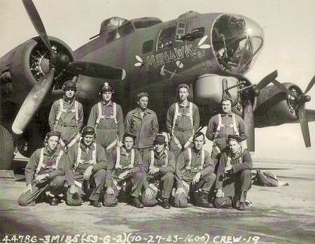 Warren Bates crew, 709th Rattlesden, undated Standing L-R: Sgt Harry Doung Sgt Daniel De Tullio Lt John H. Bauman Sgt William Sonneborn Sgt Claude Cluck Kneeling L-R: Lt Warren F. Bates Lt Luther "Ike" Eisenhart Sgt Robert Vogt Ground crew not included: Sgt William Rhoades Sgt Beth Liss |