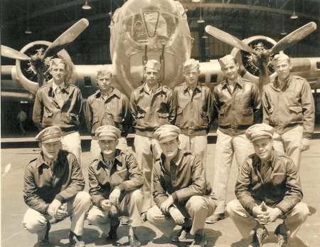 Olds crew, 709th Rattlesden, undated Kneeling L-R: Lt. Kenneth J. Loehndorf Lt. Micheal Kraft Lt. Dennie F. Hatfield Lt. Richard W. Olds Standing L-R: Sgt. Charles E. Oder Sgt. Phillip W. Barrett Sgt. Clyde W. Davis Sgt. Robert B Robinson Sgt. Percy O. Ronning Sgt. James C. Smith |