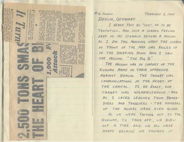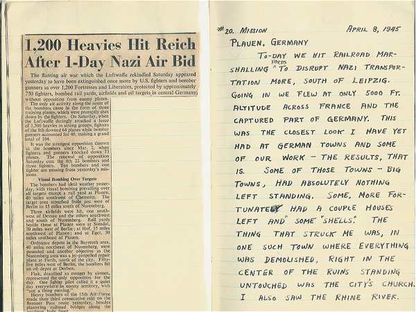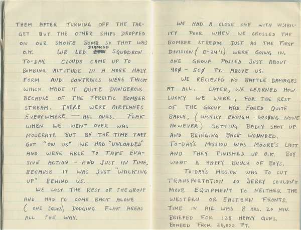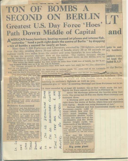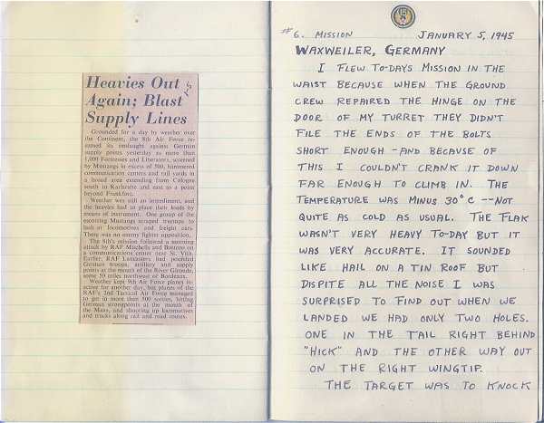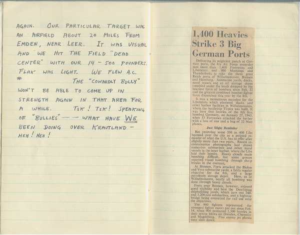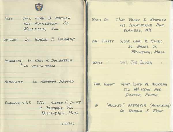 | Lauri Rautio of the Mayhew crew (708th) has provided the following Combat Flight Log. It is one of the most explicit and expressive documents in our collection, and describes many aspects not otherwise covered in available materials. |