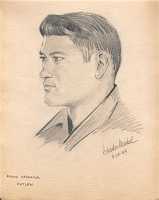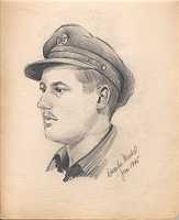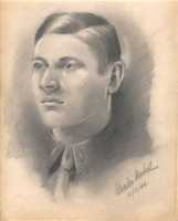 Rattlesden, Sgt Charles Meshel, ball turret gunner, began drawing his crewmates and others. A few of his drawings are included below. |