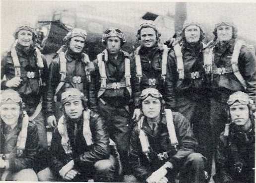 | Craig crew, 709th Standing, L-R: Lt. George Rosenfield, B Lt. David Craig, P Lt. Dale Lewellen, CP Lt. Robert Abbott, N Kneeling, L-R: Oliver Dismuke, ROG William Attiyeh, ENG William Cross, BTG Not Shown: William Noa, WG Charles Bante, Jr., TG Identified by Ms. Connie Williams |