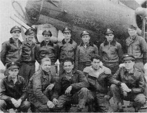 711th Standing, L-R: Ernst "Bob" Rohde, P Alan S. Cook, CP Gordon F. Serrott, B John D. Stockham, N Kneeling, L-R: Leonard C. Smith, TG Frank J. Wisniewski, BTG John P. Biscardi, WG Walter J. Hemhauser, ENG George W. Schwegel, ROG Identified in Spring 2002 447thBG Newsletter, p. 6 |
