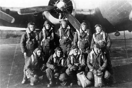 Hoffman crew, 710th Rattlesden, undated Standing, L-R: unknown Sgt. Paul Lynam Lt Herbert McNabb Lt Beverly Hoffman Lt John D. Wells Sgt Melvin Ragsdale Kneeling, L-R: unknown Sgt. Robert Longwitz Sgt. Harold O. Kiena Sgt. Earlie Presson Not pictured: Lt. William North Crew Profile- Hoffman Combat Diary- Lt. Herbert McNabb |