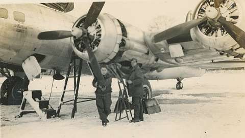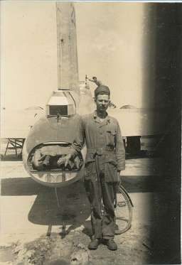Keep 'em Flying Staff Seargent Harvey May Jr. was an aircraft mechanic in the 708th Squadron. |